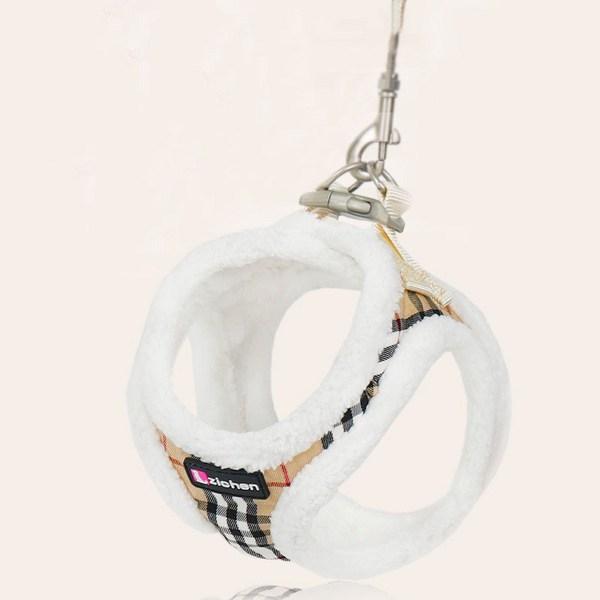 Комплект шлейки с меховой подкладкой в клетку Pastel, бежевый