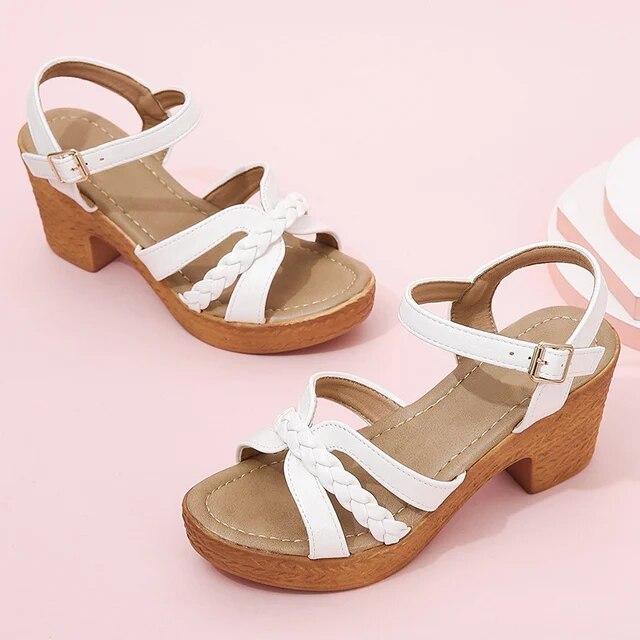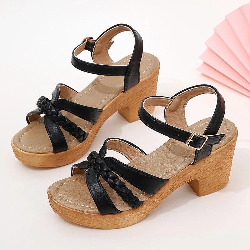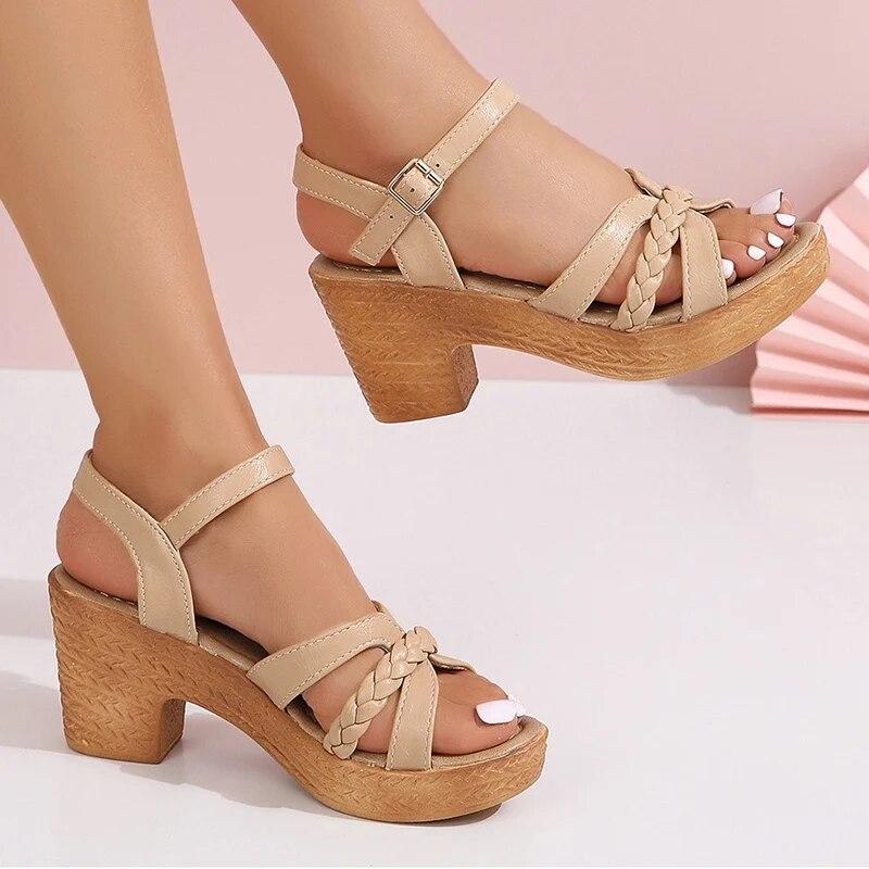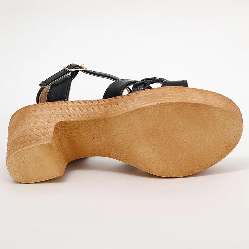 Римские плетеные сандалии на толстом каблуке, женские сандалии с ремешком на щиколотке, массивные сандалии на платформе, женские летние с пряжкой