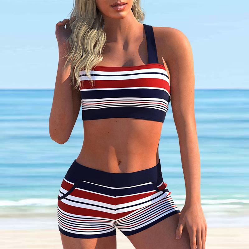 Женский купальник с лямками на плечах, бикини в красную полоску с принтом и короткий купальник-майка — купить товар онлайн с бесплатной доставкой по всему миру!