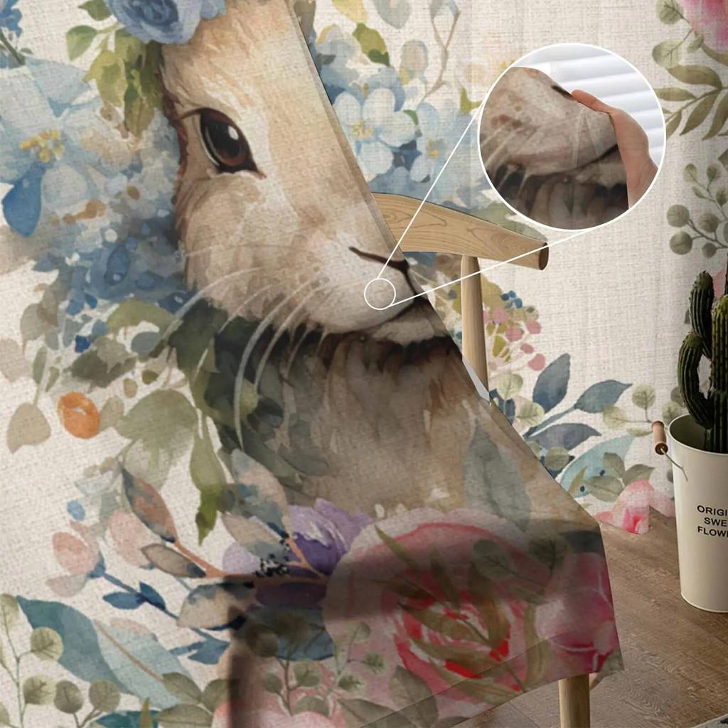 Пасхальный кролик, акварельные цветы, прозрачные шторы для гостиной, кухни, оконные шторы, тюлевые занавески для спальни, вуали