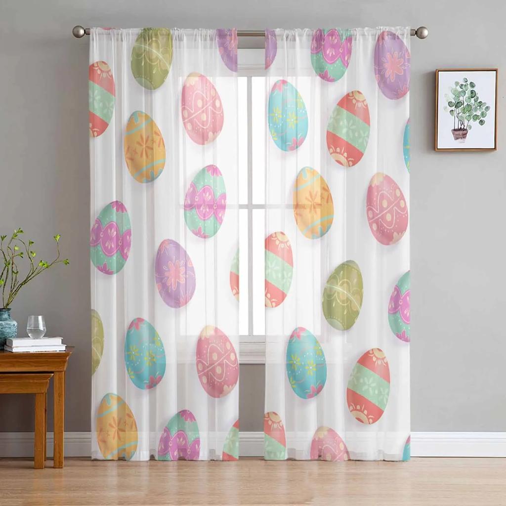 Пасхальные акварельные яйца, прозрачные шторы для гостиной, кухни, оконные шторы, тюлевые занавески для спальни, вуали