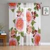 Прозрачные оконные шторы с цветочным узором и розовыми розами для гостиной, спальни, современные шифоновые вуали, тканевые шторы