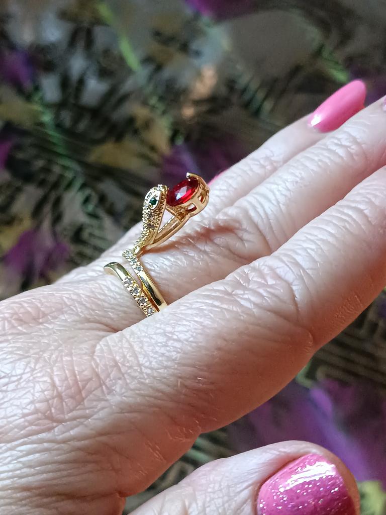 Колечко бесподобно!! Правда, посылка шла до юга Хабаровского края черепашьим аллюром: отправили 29 мая, а получила 3 июля. Но украшение стоит этого ожидания! Бережно упаковано продавцом. На свой 17,5 размер заказала 8. Подошло идеально. Сначала, вскрыв посылку, я подумала, что в кольце только один, центральный камень. Но неожиданно на пальце засверкали мизерные стразики в боковых лепестках. Сверкает изумительно! Есть "серебряная" проба. Но, разумеется, это не серебро. Но украшение стоит своей заявленной стоимости! Продавцу, однозначно, 50 звёзд! Берите, не пожалеете!