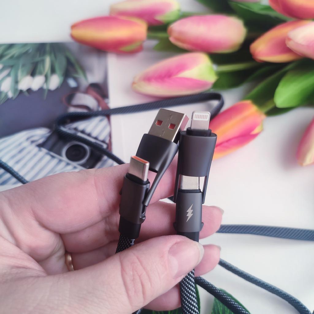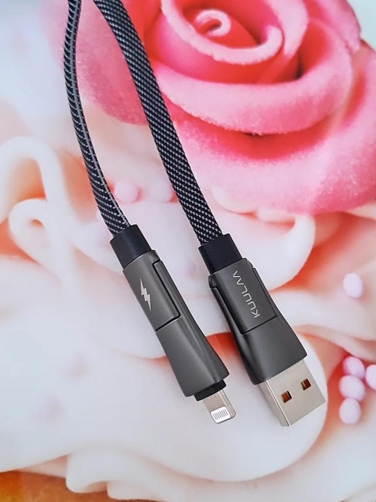 Кабель Kuulaa USB Type- C+ lightning. Отличный кабель с поддержкой большого тока. Данный кабель примечателен тем, что он может пропускать через себя нагрузку с зарядного устройства до 60W. Также он поддерживает возможность зарядки гаджетов от зарядных устройств с поддержкой функции быстрой зарядки QC 4.0. А в настоящее время уже много таких смартфонов, планшетов и прочей электроники. Но чтобы зарядка передавала правильно заряд и нужен подобный кабель с поддержкой этой самой функции. Именно тогда устройство будет заряжаться быстро и проходящий ток не будет "срезаться" кабелем. А еще этот кабель интересен тем, что у него есть два разъема у него USB Type-C и разъём lightning 👍Это своеобразный конструктор) С помощью данного устройства также можно передавать данные. Хочется отметить оплётку, она качественная, гибкая и податливая. Доставка три недели👍 Если вы ищите качественный кабель, вам сюда) Рекомендую👍