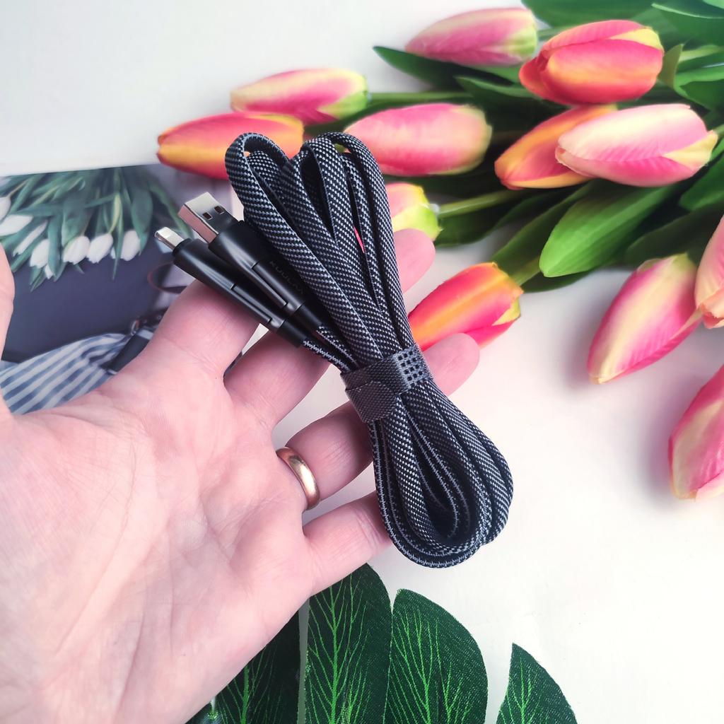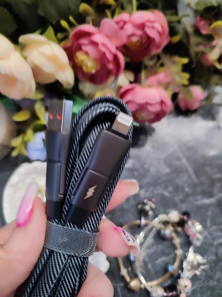 Супер шнур для всех видов телефонов. Длинна 2 метра💥 Привет! Зарядных кабелей много не бывает, я постоянно покупаю и в запасе лежат на случай тот когда предшественник вышел из строя. Этот кабель очень удобный в нём имеется несколько насадок USB Type-C и разъём lightning 👍 на разные модели телефонов. Оплётка, качественная, гибкая и податливая.