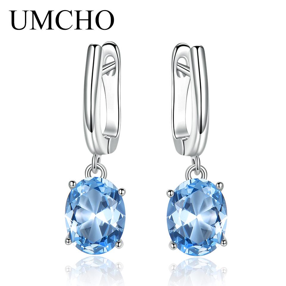 UMCHO серьги-клипсы с синим топазом и драгоценными камнями для женщин, модные серьги на юбилей, день рождения, День святого Валентина, ювелирные изделия, подарки — купить товар онлайн с бесплатной доставкой по всему миру!