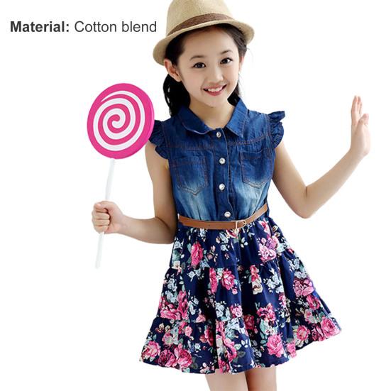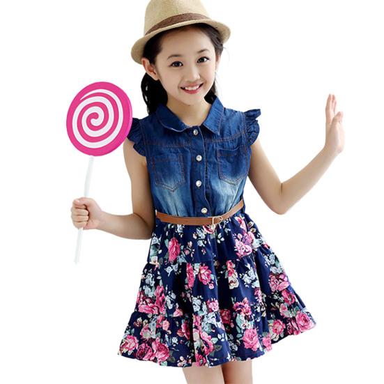 Детское платье с маленькими летящими рукавами и накладными карманами для девочек, джинсовое платье с лацканами для выхода на улицу