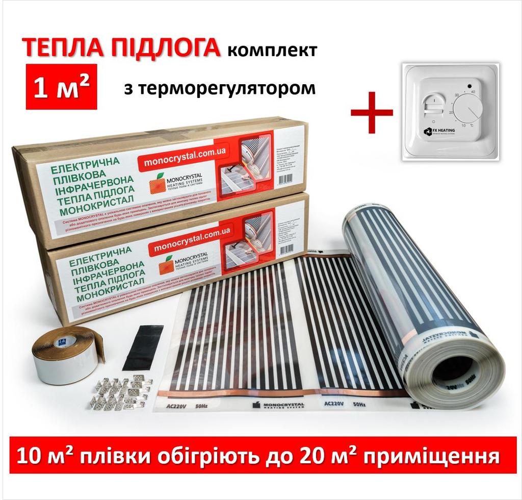 Полный комплект с терморегулятором для монтажа теплого пола обогреет до 2 кв.м помещения.