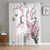 Розовые прозрачные шторы с цветком вишни, оконные шторы для гостиной, спальни, жалюзи, детская комната, домашний декор