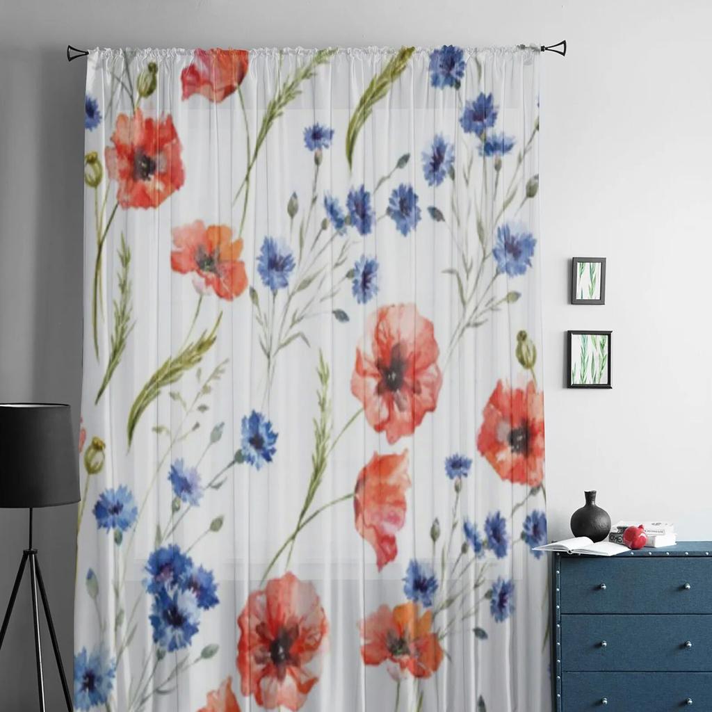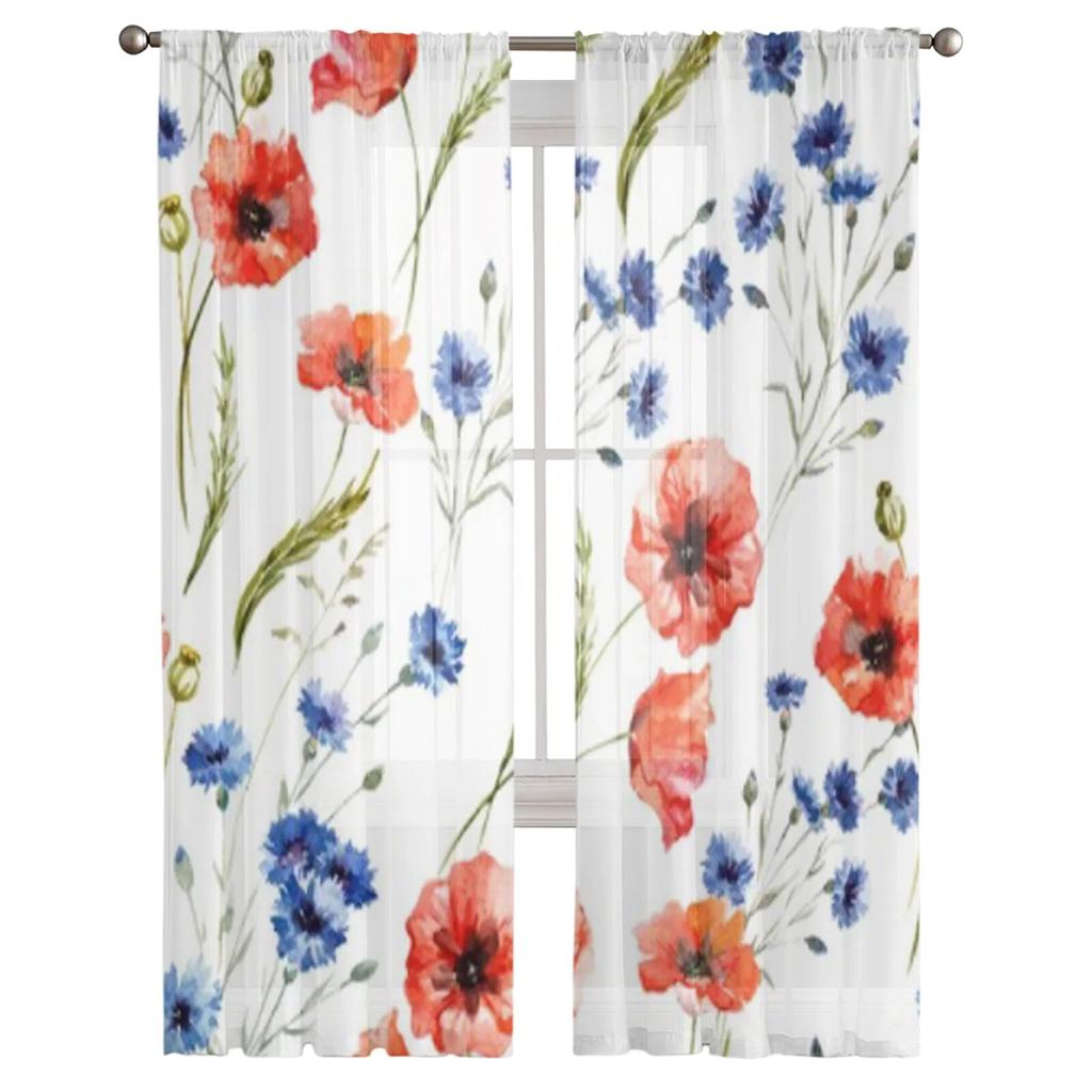 Красивые полевые цветы Мак акварельные прозрачные шторы для спальни гостиной тюлевые шторы для кухни оконные вуали