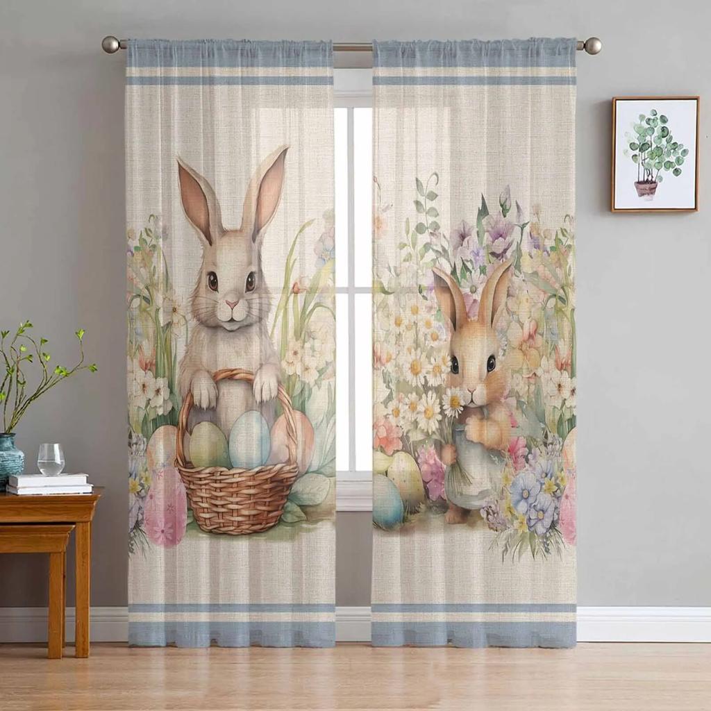 Пасхальные яйца, кролик, цветы, прозрачные шторы для гостиной, кухни, оконные шторы, тюлевые занавески для спальни, вуали