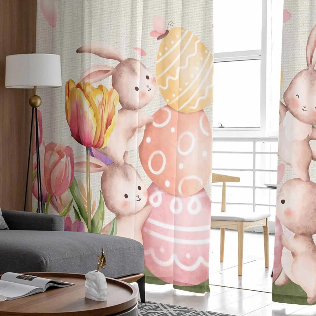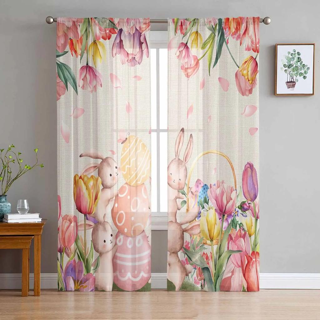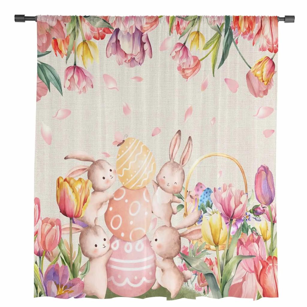 Пасхальные тюльпаны кролик акварель прозрачные шторы для гостиной кухни оконные шторы спальня тюль вуаль шторы