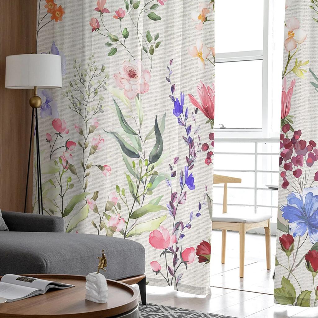 Винтажные прозрачные шторы с акварелью и цветочным принтом для гостиной, спальни, тюлевые занавески для кухни, вуаль, шторы, жалюзи, панели