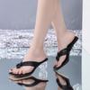 Летние женские сандалии, тапочки на высоком квадратном каблуке, шлепанцы, модные прозрачные сандалии на среднем каблуке с кристаллами