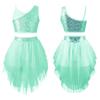Танцевальные наряды для девочек из 2 предметов, укороченный топ без рукавов на тонких бретельках с блестками и юбкой-пачкой, балетная танцевальная одежда