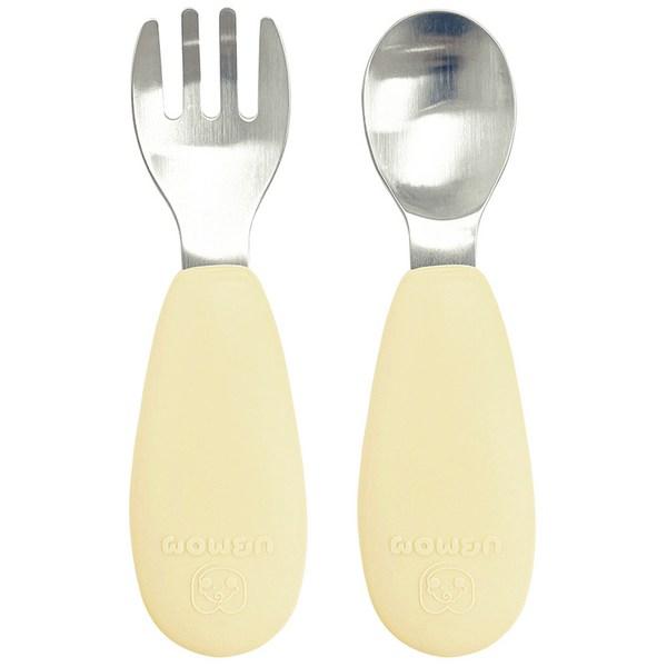 UBMom Infant Нержавеющая сталь Силиконовая ручка Детское питание Ложка Вилка Набор, тыквенное полотенце (желтый), 1 комплект
