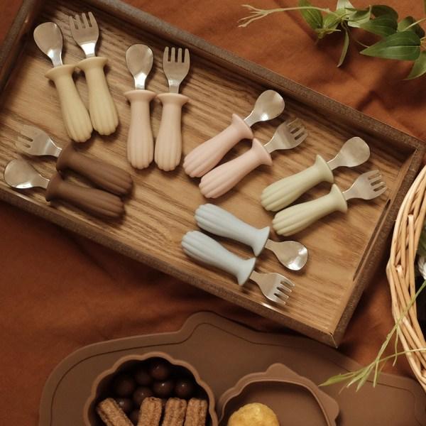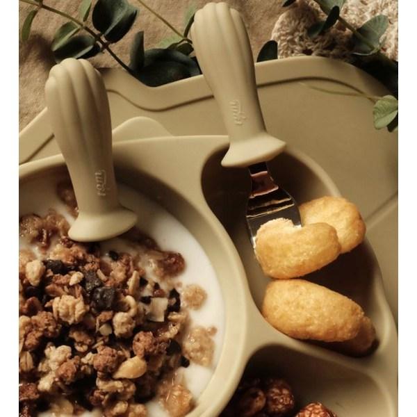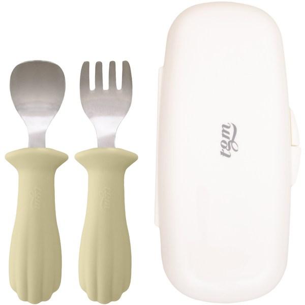 TGM детская раскладушка из силикона, нержавеющая сталь, набор ложка + вилка для детского питания, оливковый, 1 комплект