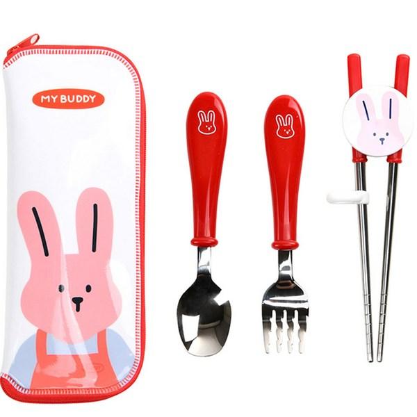 Набор детской посуды Daily Like, красный, ложка+вилка+палочки+футляр, 1 шт.