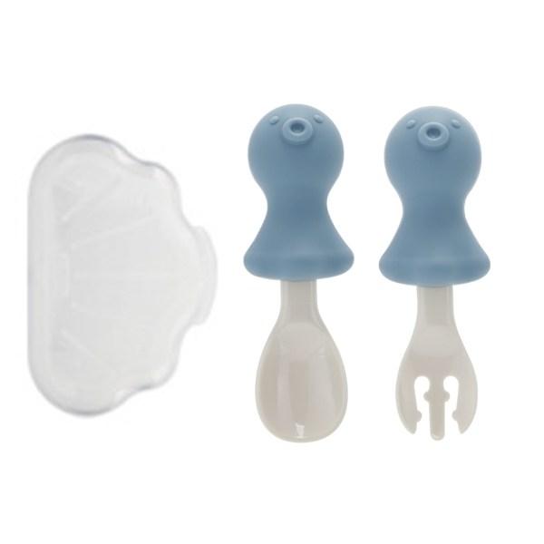 Edison Baby Octopus Силиконовая ложка + вилка + футляр для самостоятельного направления, синий