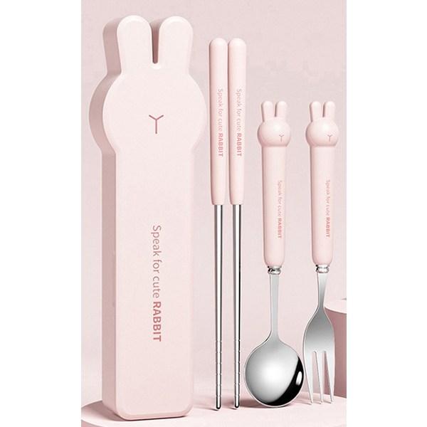 Набор ложка + вилка + палочки для еды + футляр Cute Rabbit для младенцев MP255, розовый