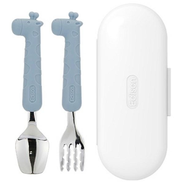 Набор столовых приборов Edison, детский силиконовый футляр для ложки и вилки, синий жираф, ложка + вилка + футляр, 1 комплект