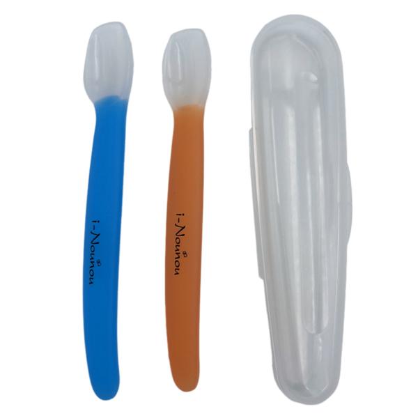 Ложки силиконовые для детского питания Ainunu 2шт, синие, оранжевые, 1шт