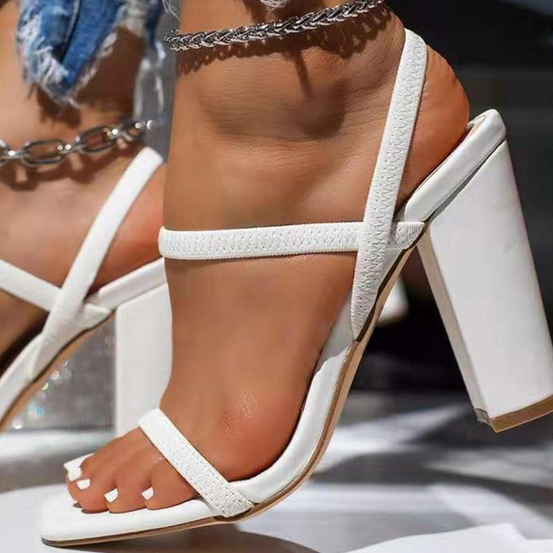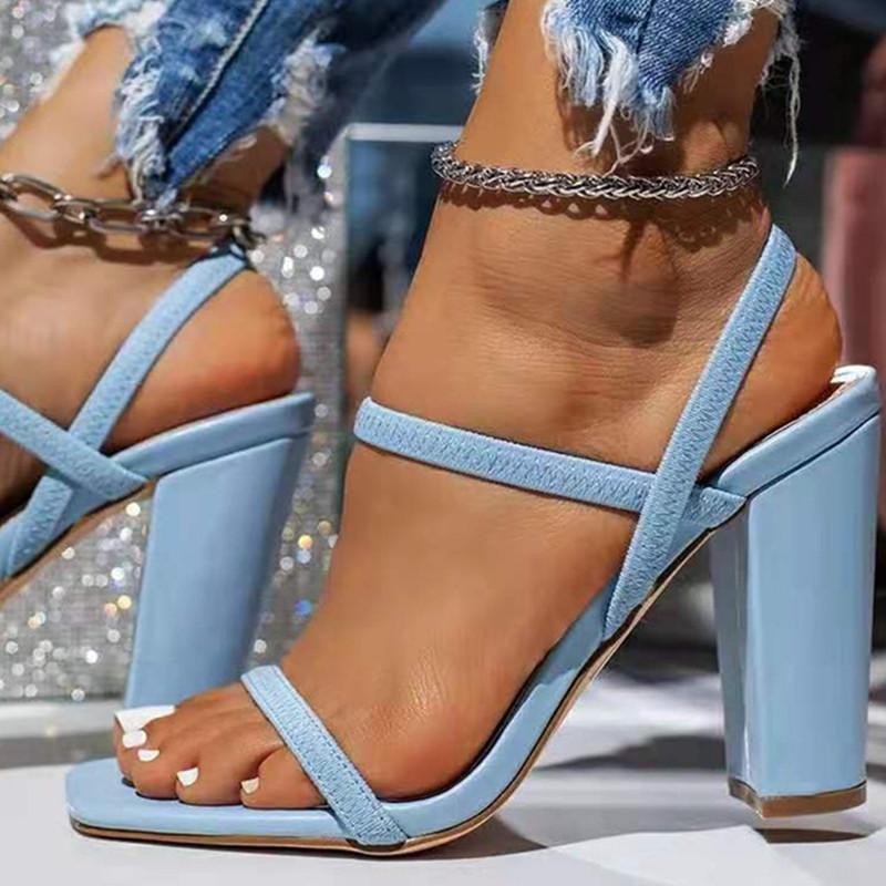Весенняя и летняя обувь. Женская обувь больших размеров. Женские сандалии на высоком каблуке с открытым носком. Сандалии с квадратным носком.