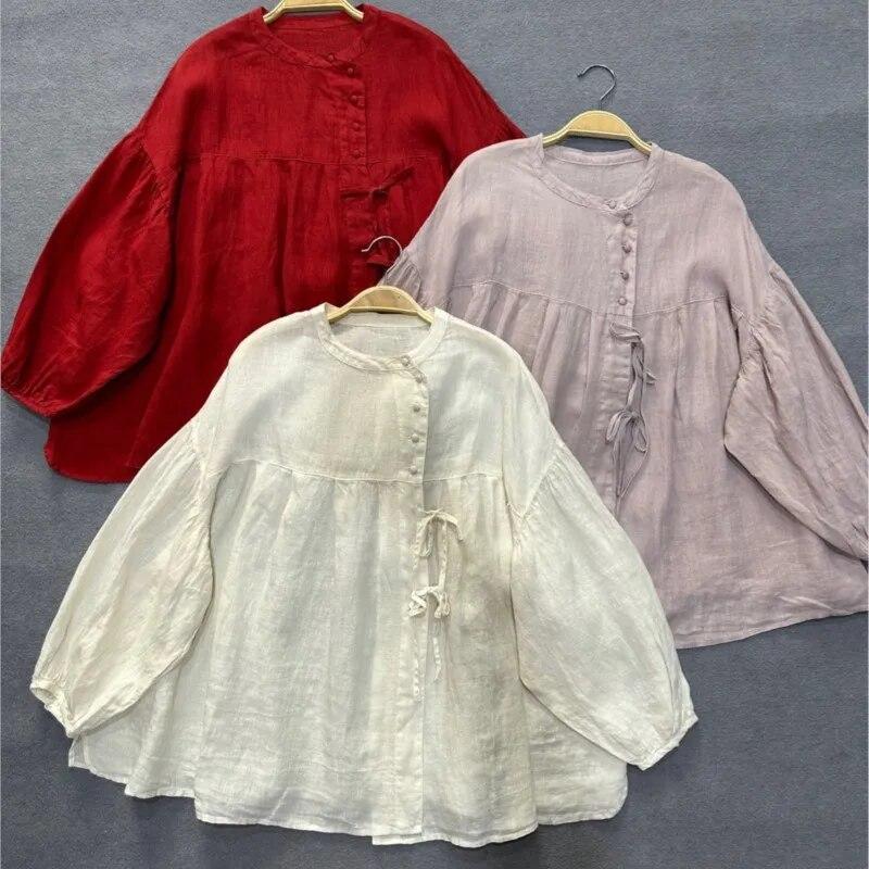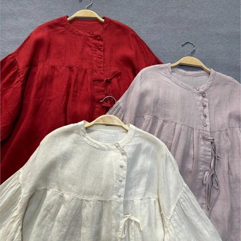 Johnature Весенне-осенняя винтажная литературная косая рубашка на шнуровке, свободные топы, простые однотонные женские рубашки