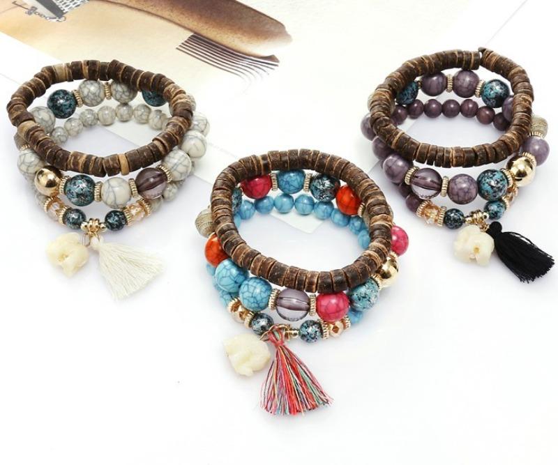 Милый браслет со слоном, многослойный браслет ручной работы из бисера, браслет с кисточками из бирюзового дерева