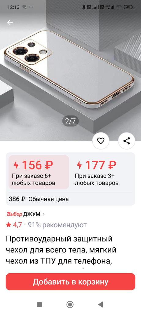 Чехол просто отличного качества! Смотрится очень красиво , дизайн на высоте.подошёл идеально на Redmi Note 13. Спасибо большое продавцу за качественную упаковку, однозначно рекомендую к покупке!!