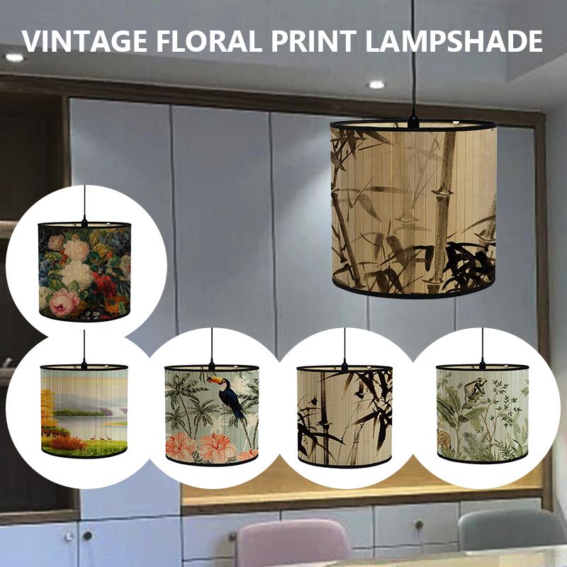 Абажур с цветочным принтом птицы, складной ретро бамбуковый абажур, абажуры ручной работы с зелеными растениями