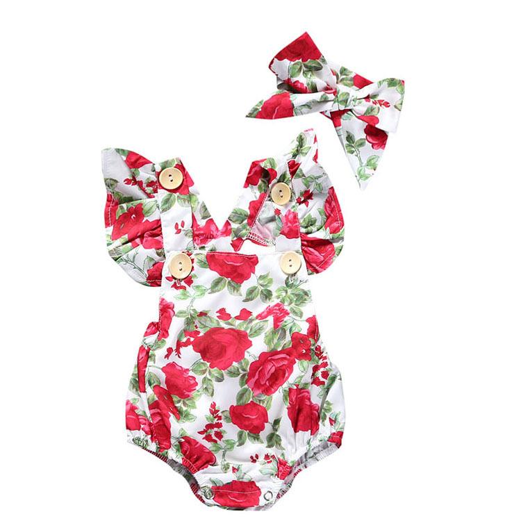 Комплект одежды для маленьких девочек, 2 шт./компл., цельный комбинезон с цветочным принтом для новорожденных девочек, детский комбинезон, комплект одежды с повязкой на голову, От 0 до 24 месяцев
