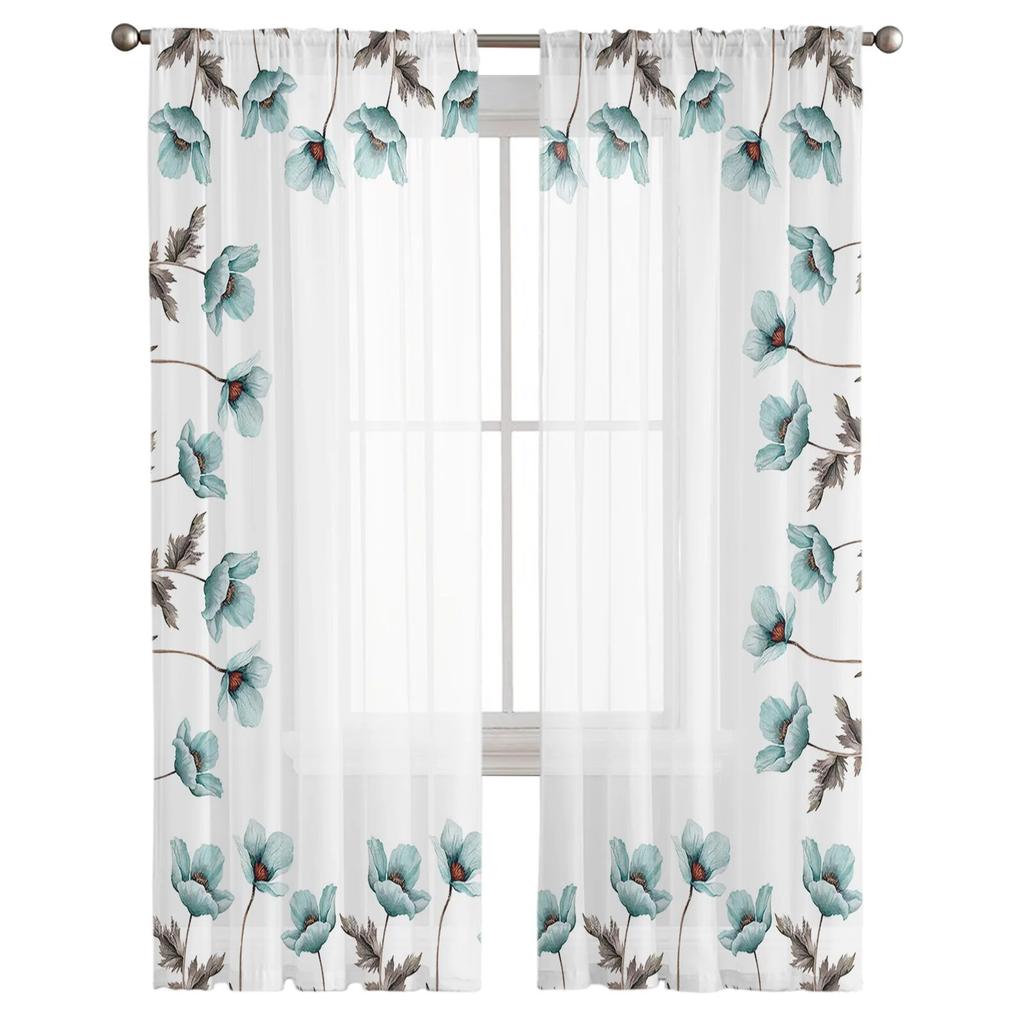 Синий Тюльпан Цветы Тюлевые Шторы Для Гостиной Прозрачные Шторы Для Спальни Жалюзи Вуаль Шторы