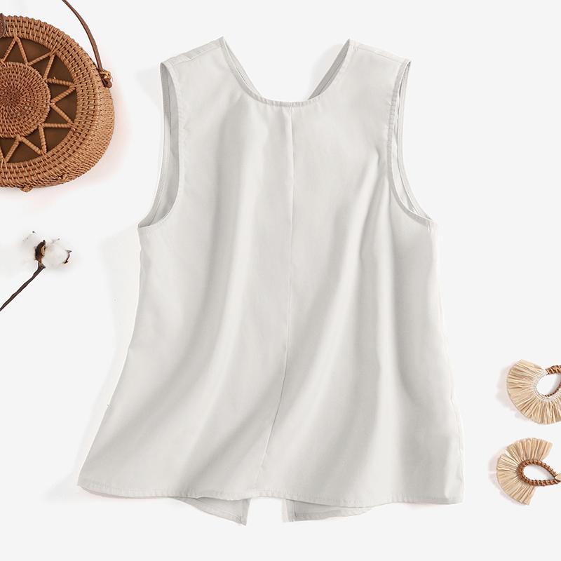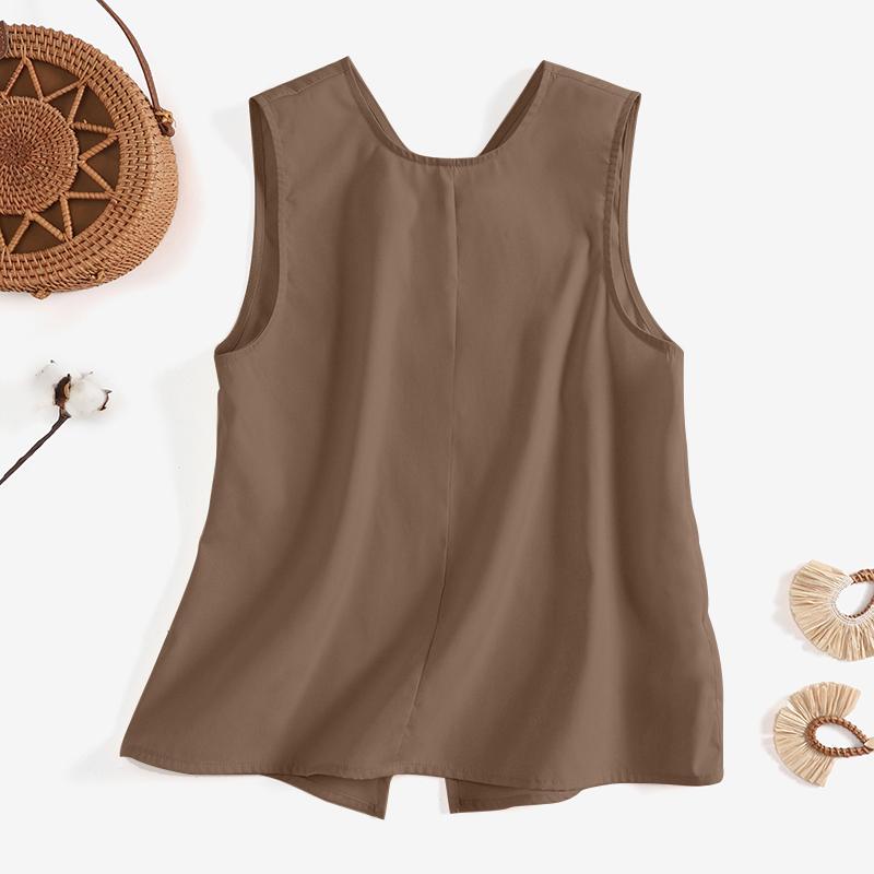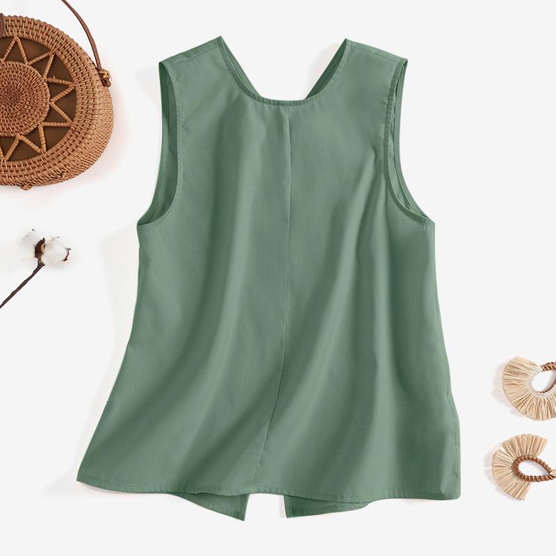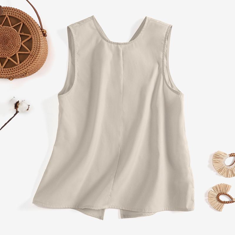 VONDA Женский летний свободный жилет без рукавов с круглым вырезом и пуговицами, сплошной цвет
