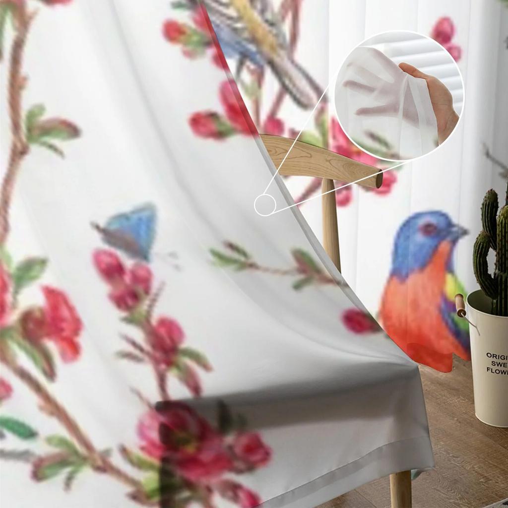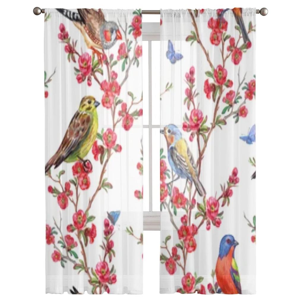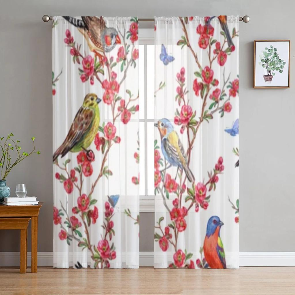 Прозрачные оконные шторы с птицами и цветами для гостиной, спальни, современная вуаль, тюлевые шторы, тканевые шторы для кухни