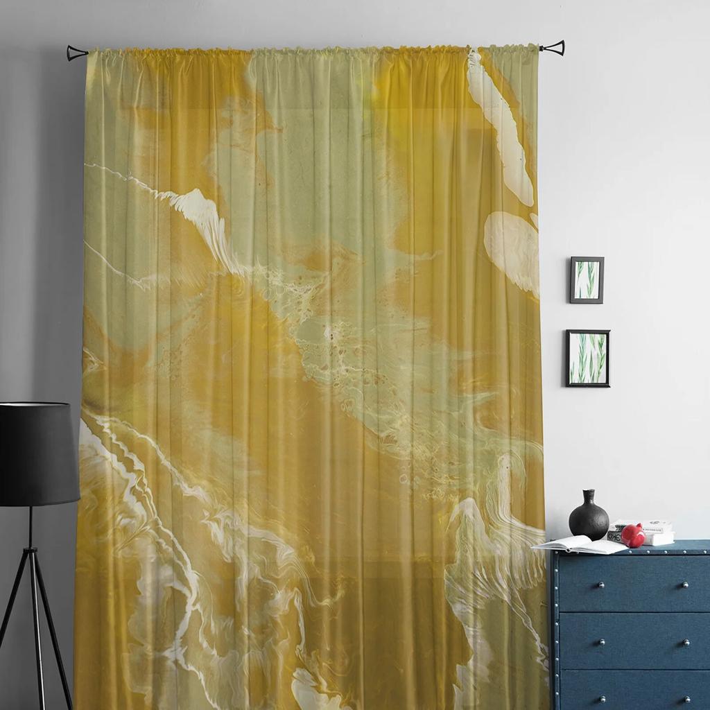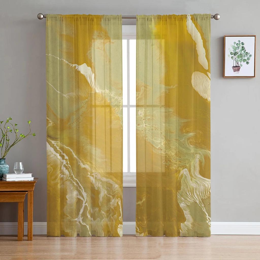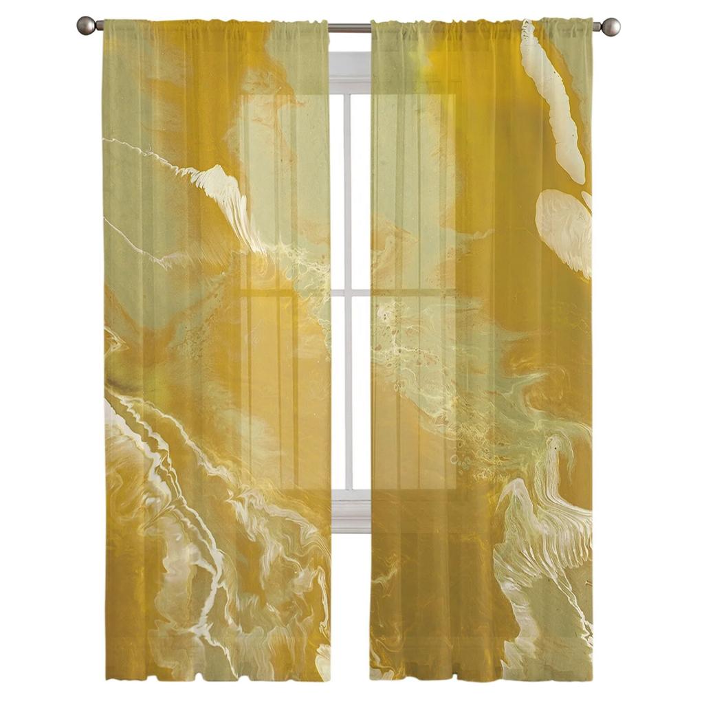 Абстрактные желтые мраморные прозрачные шторы для гостиной, спальни, домашний декор, кухня, тюль для окон, вуаль, шторы