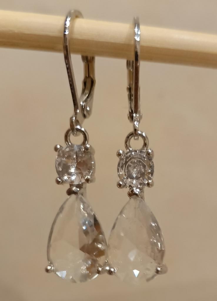 Серьги простые на вид: форма напоминает капельку прозрачную, но такую чистенькую! Сверху камушек под хрусталь блестит!Выглядят серёжки очень мило. Застёжки в рабочем состоянии.Длина серёжек 3 см.