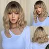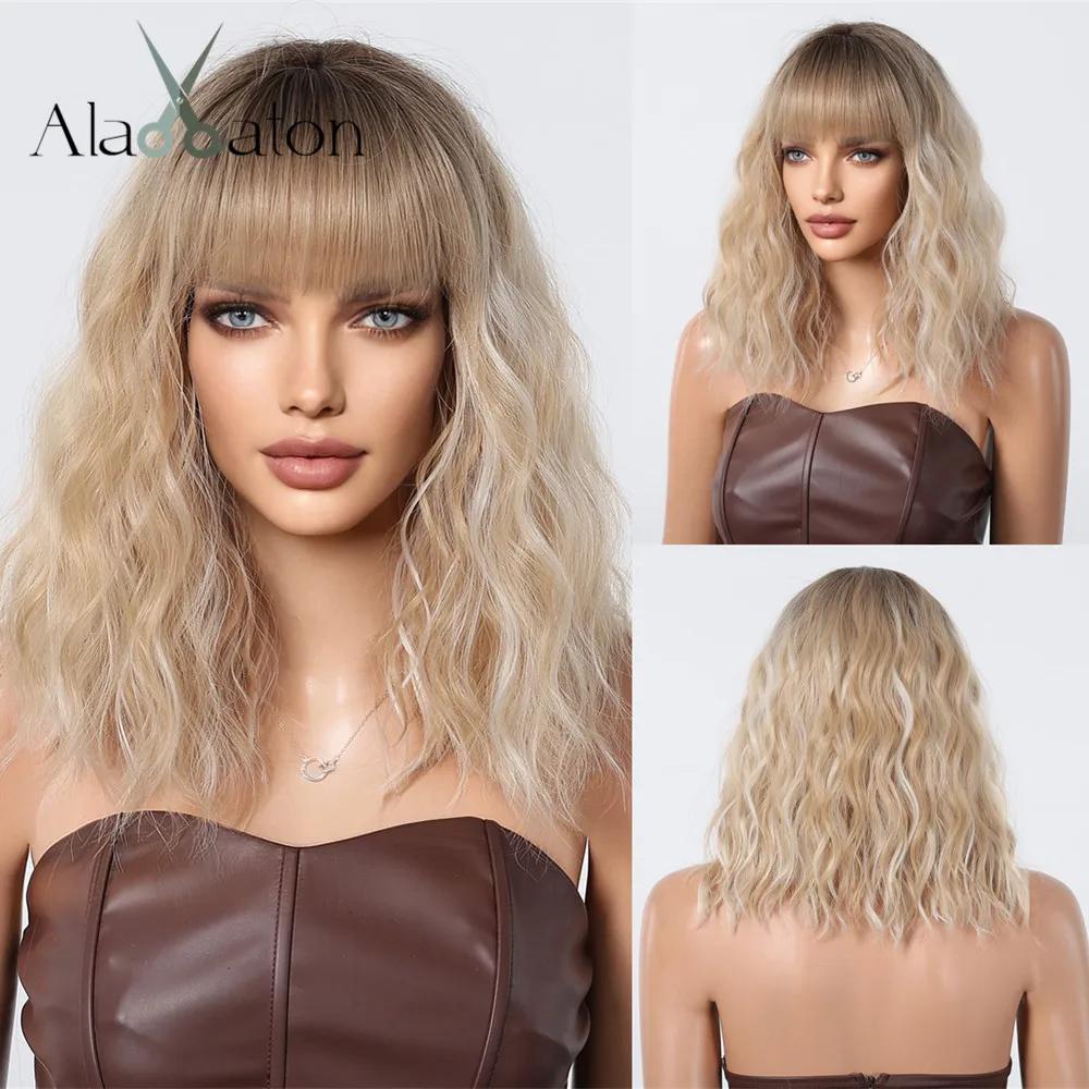 ALAN EATON Блондинка до плеч, синтетические парики с челкой, блондинка с омбре, мелкий парик для женщин, вьющийся повседневный парик, термостойкий