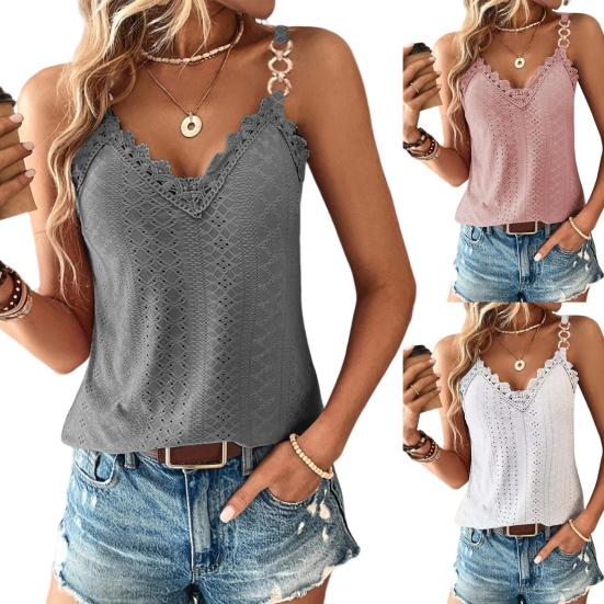 Летние топы, кружевные подтяжки с v-образным вырезом, полые уличные наряды, полиэстер, без рукавов, женский жилет, поставка для свиданий