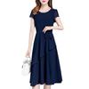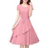 Женское платье миди с круглым вырезом и коротким рукавом, элегантное платье с многослойным подолом и шнуровкой, платье миди трапециевидной формы, уличная одежда