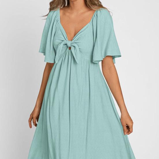 Подчеркните свой стиль с помощью этого потрясающего платья миди с V-образным вырезом из мягкой и легкой полиэфирной ткани.. Свободный покрой этого платья обеспечивает комфорт на весь день, а однотонный цвет излучает элегантность и изысканность..