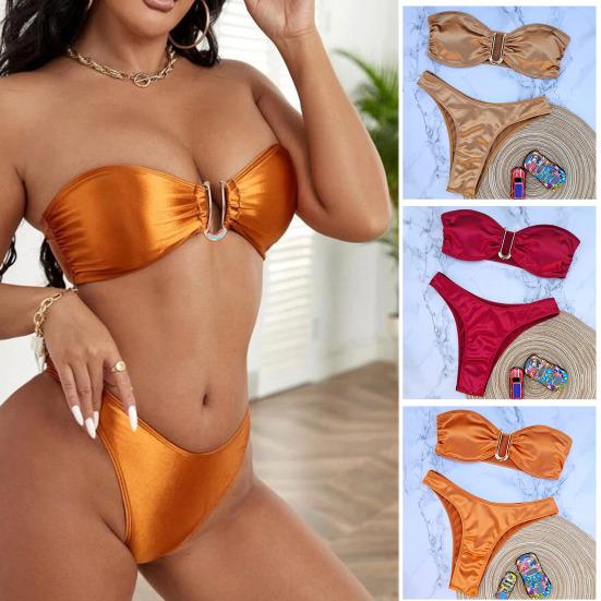 2 шт./компл. женский комплект бикини с открытыми плечами без бретелек атласный эластичный быстросохнущий мягкий беспроводной горячий купальный костюм женский купальник купальник
