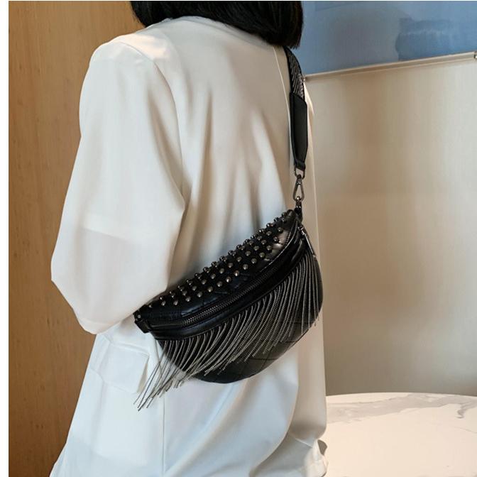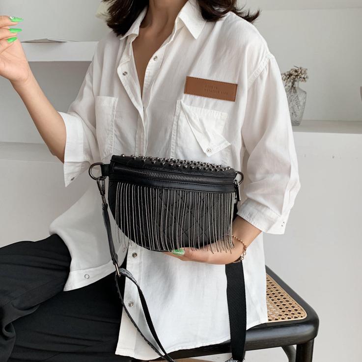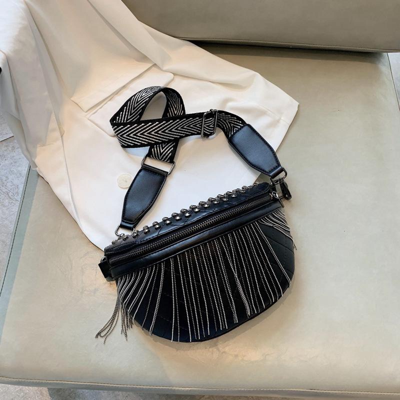 Модная женская сумка на плечо с кисточками, новая модная широкополосная поясная сумка через плечо с заклепками и кисточками, женская нагрудная сумка