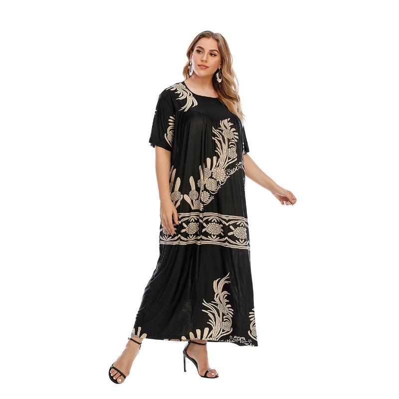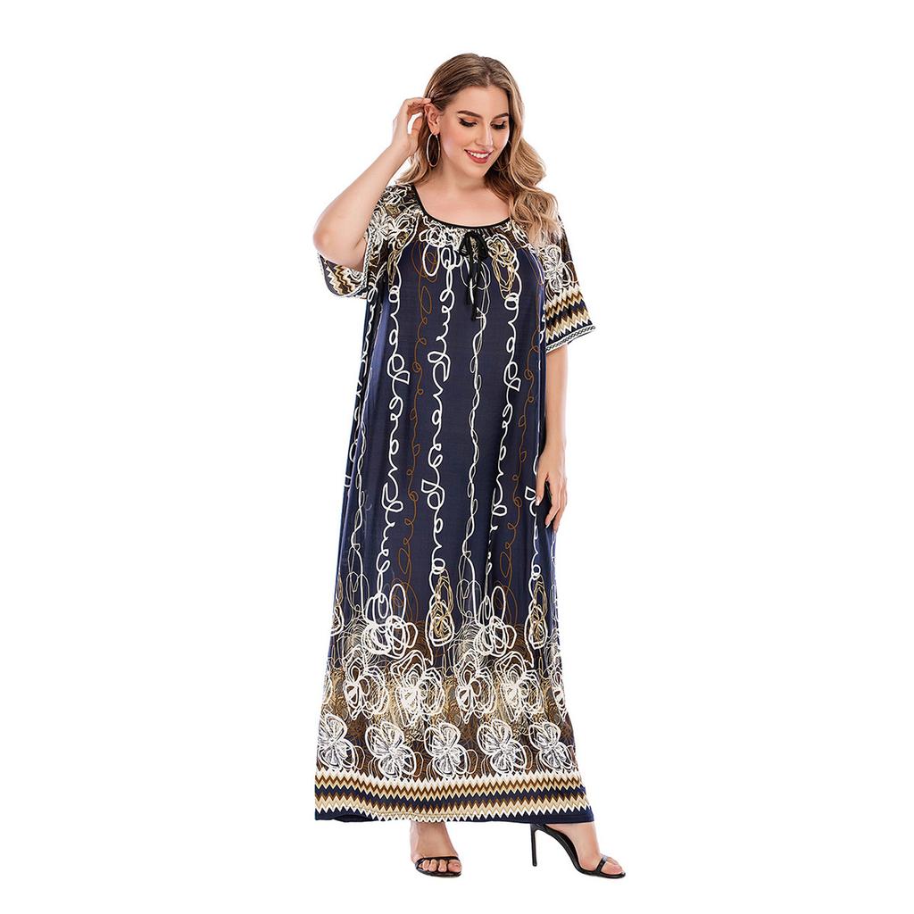Летнее женское платье больших размеров, винтажные свободные платья, повседневные длинные платья с короткими рукавами для отпуска и отдыха