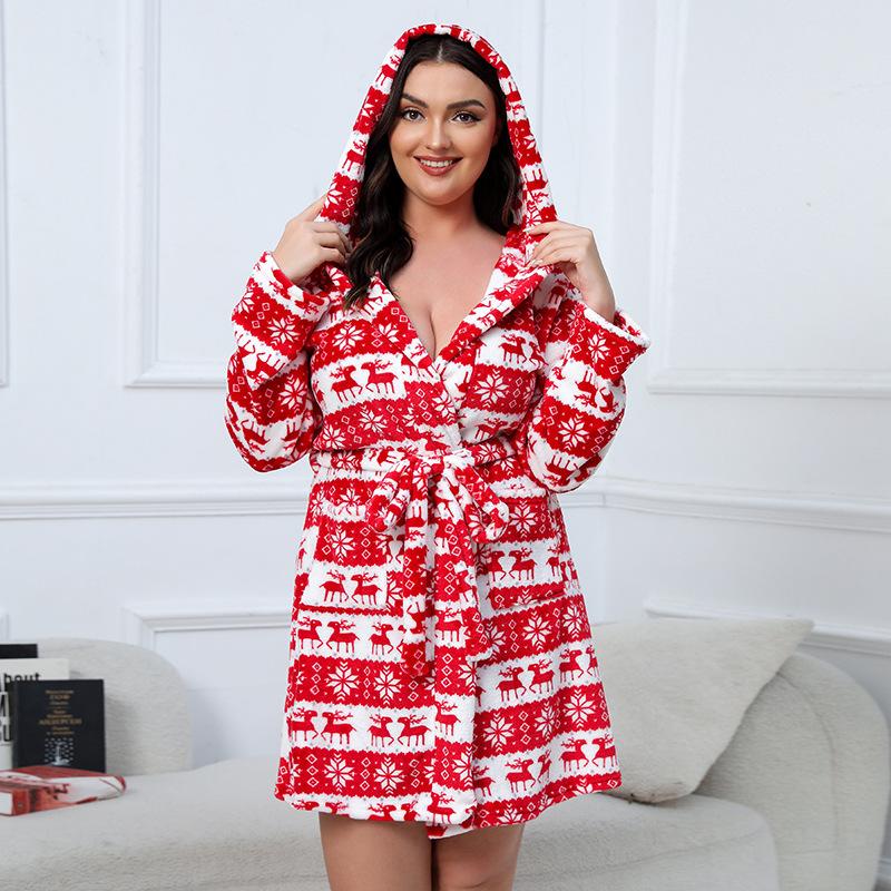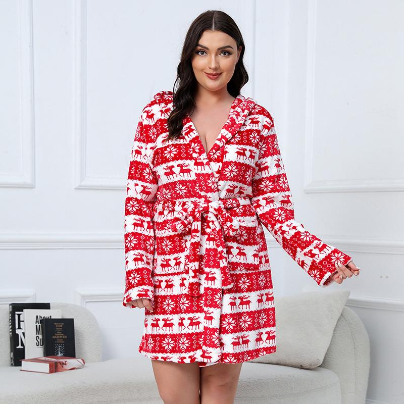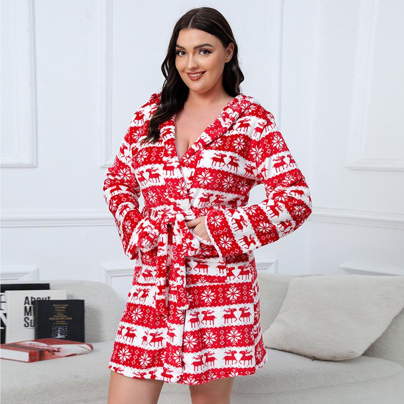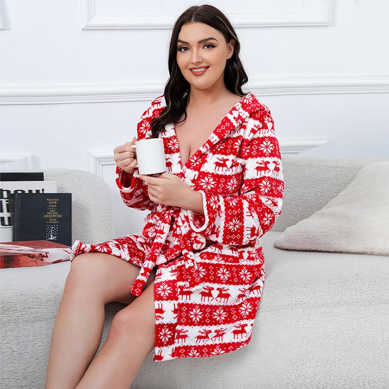Большие размеры, осенне-зимняя женская ночная рубашка, теплый большой фланелевой толстый халат, рождественское праздничное утреннее платье для оленя
