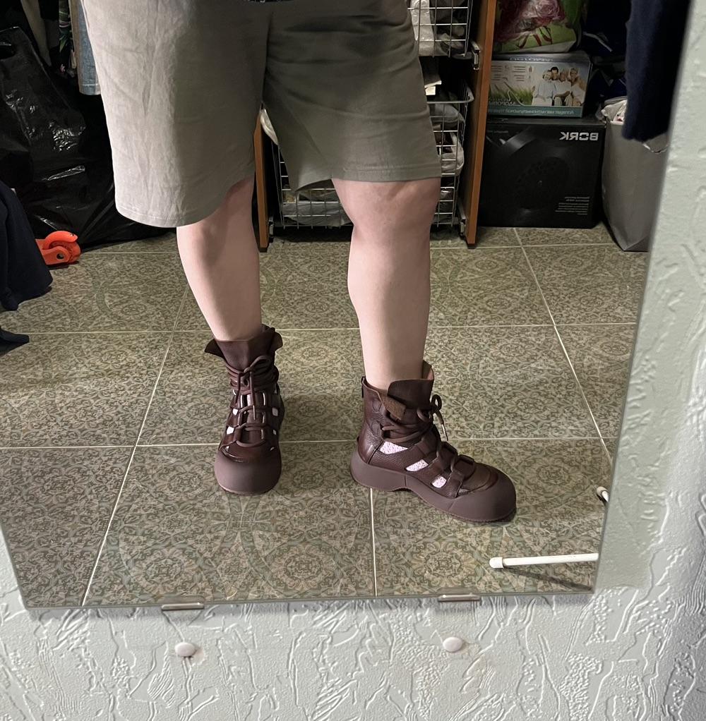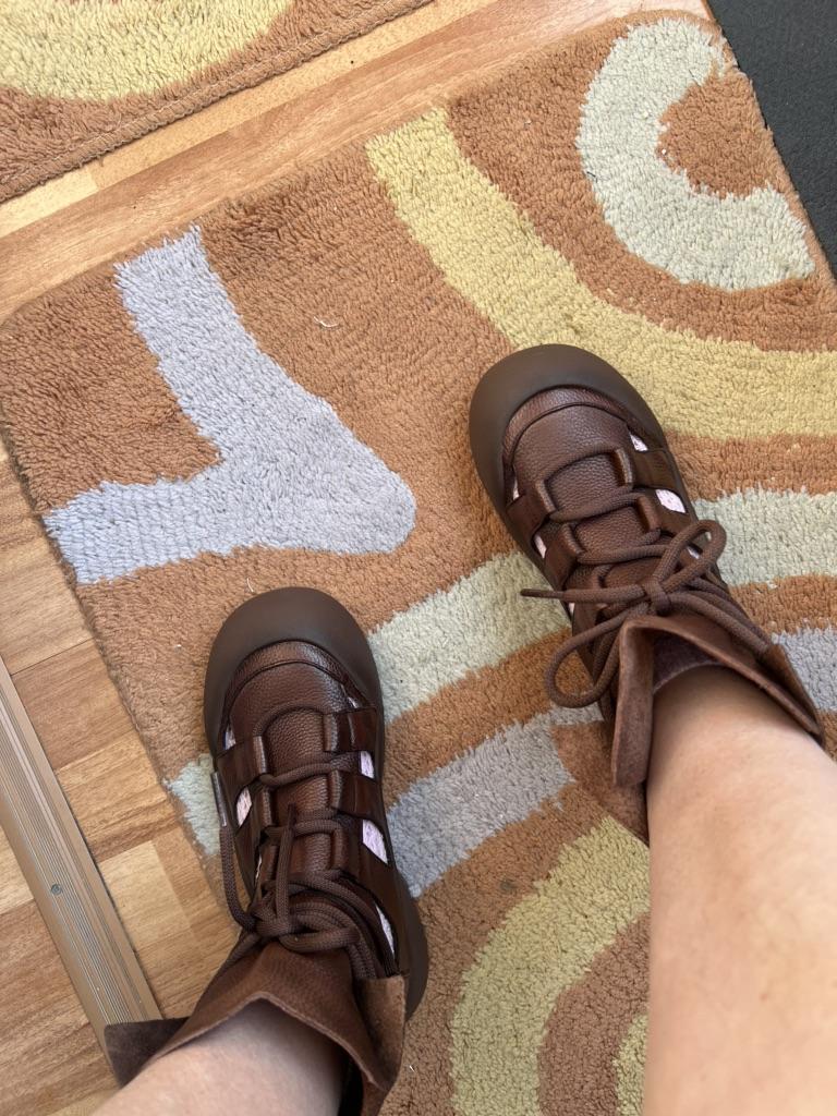 На свой обычный 38 размер заказала 40, решила будет великоват это не маловат, носить можно, вполне комфортно, ноге свободно, мне все понравилось и цвет и фактура, стиль мой, сильно переживала, заказывала на Джуме первый раз, покупка отслеживалась в пути пришло все раньше заявленного времени на 12 дней, все упаковано надежно. Спасибо, буду пользоваться и вам рекомендую этого продавца и этот товар. После недели носки могу дополнить свои впечатления. Сандалии мне очень нравятся, тепла на Урале пока сильного не было, но в 20 градусов в них не жарко, а в довольно прохладные и дождливые дни в них уютно, нет ощущения влажности ступней и поэтому почему то тепло 😅, водить машину в них тоже комфортно, и самое главное я себе очень нравлюсь обутая в такую отличную от всех обувь. Для нынешнего лета это находка, то жара, то льет сутками, как я жила без моих любимых и уютных сандалюшек я не знаю.