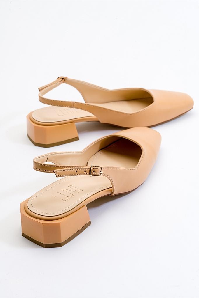 Женские повседневные сандалии темно-бежевые кожаные туфли на каблуке