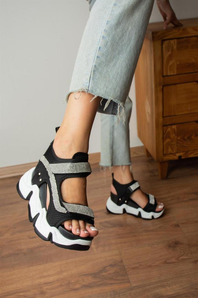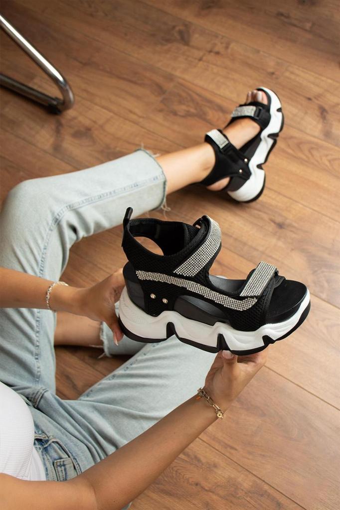 Женские повседневные сандалии Barcero Черные сандалии с вышивкой камнями