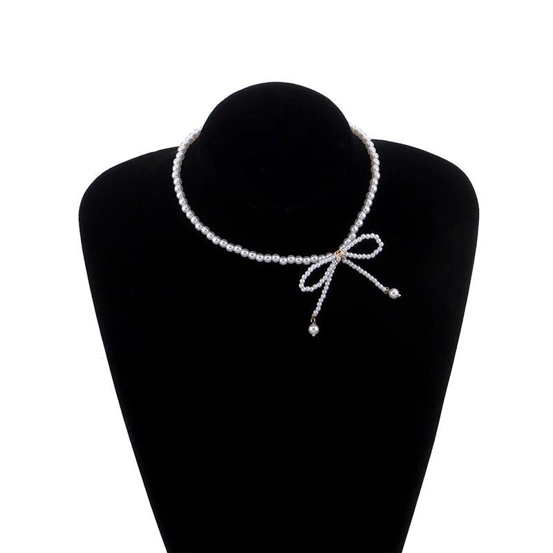 Элегантные ожерелья с бантом из циркона для женщин, ожерелье-чокер с бантом из искусственного жемчуга, изысканное ожерелье с подвеской в виде кисточки и бантом
