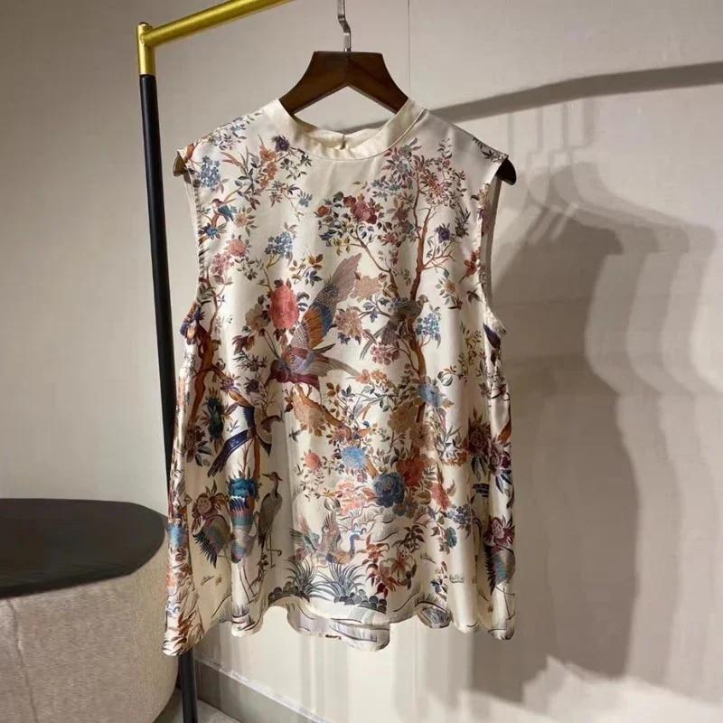 Жилет с винтажным принтом, шелковые топы Mulberry, повседневные свободные безрукавки с круглым воротником, летние женские жилеты-майки 26745